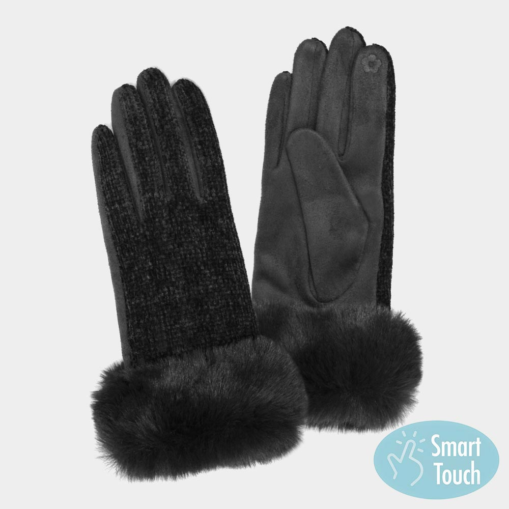 Chenille Faux Fur Cuff Smart Gloves- Two Colors